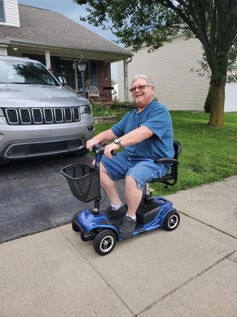 4 Wheel Mobility Scooter - Electric Powered Wheelchair Device - Compact Heavy Duty Mobile for Travel, Adults, Elderly - Long Range Power Extended Battery with Charger & Basket