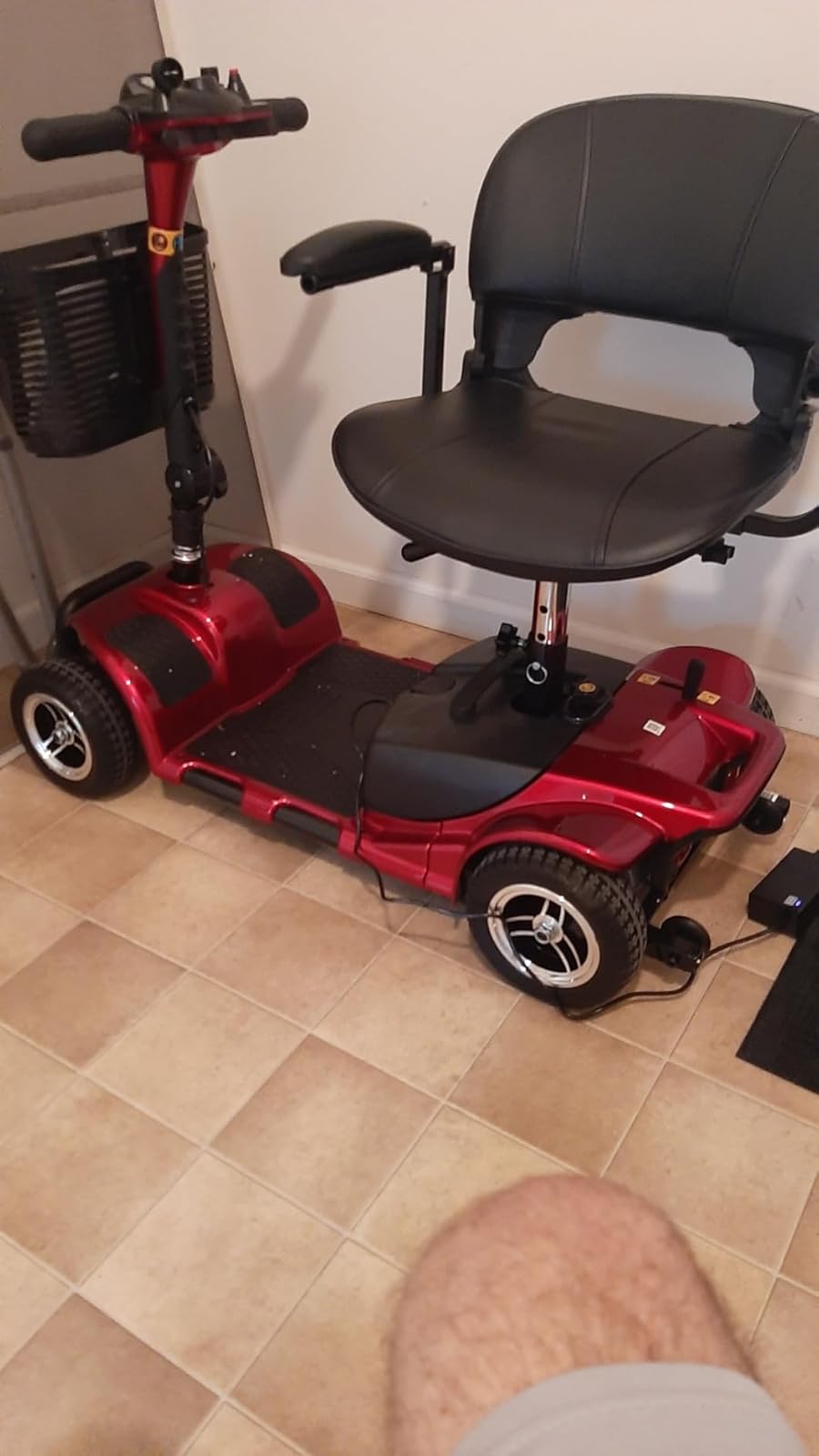 We bought the 4 wheel scooter because we will be using it outdoors and wanted stability if it was strictly an indoor scooter we would have bought the three wheel model. I can lift it easily into our SUV without removing the rear section. I cut off the left end of the control lever because the left side was backwards (forward for reverse backward for forward). I’m sure this can be easily learned but my wife has dementia so it was a problem. My wife prefers to leave the armrests off making getting on and off a little more natural for her. The scooter is a bit small but obviously that is a trade off for portability. Serendipitous Discovery the packing foam in the basket makes a nice cup holder. Overall this is a great mobility solution.