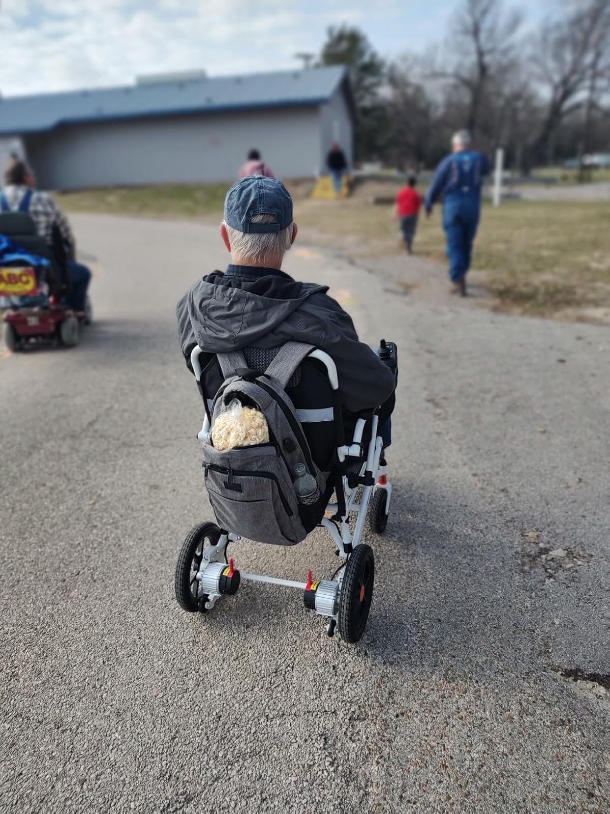 Bought this for my husband with Parkinson's who can still walk, but not long distances. Our first outing was to a flea market. It was easy for my husband to use and maneuver. It allowed us to enjoy the entire day. We will try it on a plane and in Greece in June.